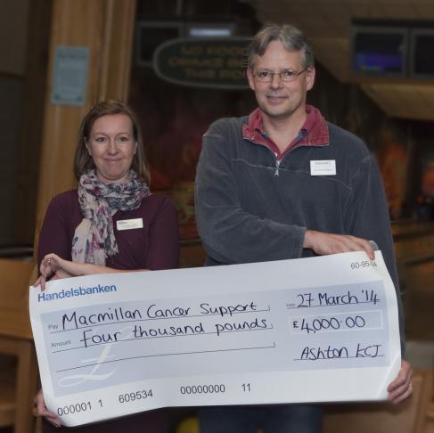 Pictured above: Paul Whittingham, Partner at Ashtons Legal, presents a cheque for £4,000 to Mandy Jordan from Macmillan.